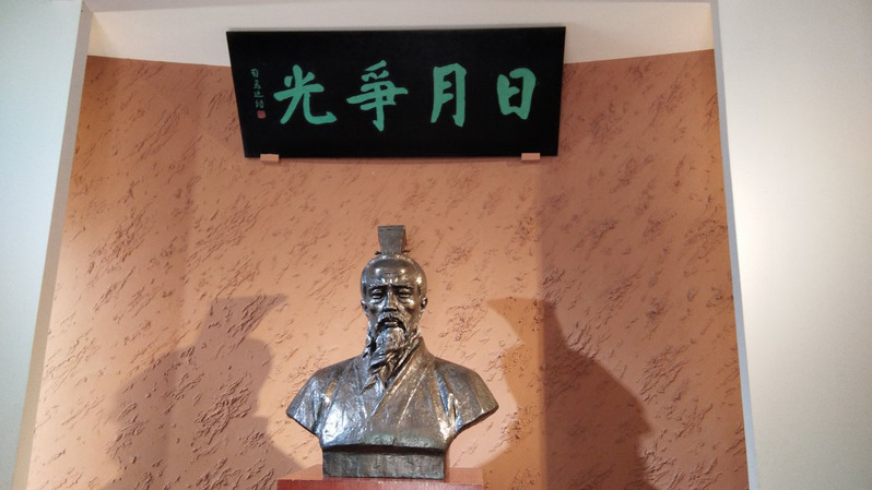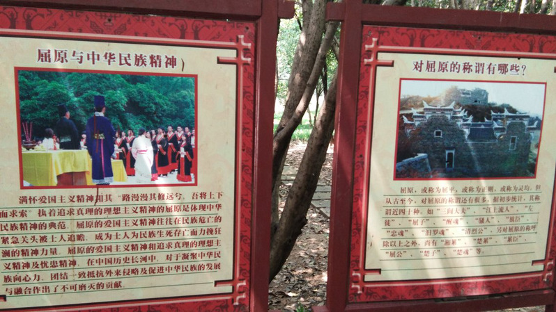 国学班同学们在游览了碧潭美景之后有组织地前往屈原纪念馆的长廊,长廊两侧记录了屈原的生平事迹以及鲁迅郭沫若等文人对屈原的赞美与评价。