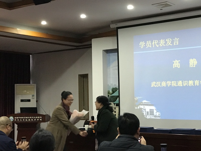 公司高静同志作为学员代表在结业典礼上发表演说:“此次培训班搭建了一个分享经验、凝练理论、提升能力的学习平台,提升了干部教育培训工作者的理论水平和业务能力,加强了同行之间的交流沟通。虽然培训时间只有4天,但是短暂的学习时光收获了满满的友谊,我们在培训期间结识了来自五湖四海乃至全国的高校好友,这是我们人生中宝贵的财富!感谢武汉大学给予这次难得的培训机会,感谢武大,感谢同仁!”话音刚落,引来阵阵掌声。这番话语也代表着培训班所有学员的心声。