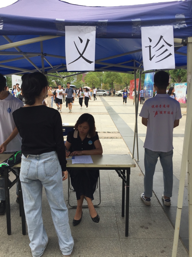 (三)“普通话义诊”推普志愿者活动。以普通话水平测试员为骨干力量,组建推普志愿者小分队,通过普通话常识宣讲、普通话模拟测试、普通话正音指导等方式,面对面帮助受众提高普通话水平。