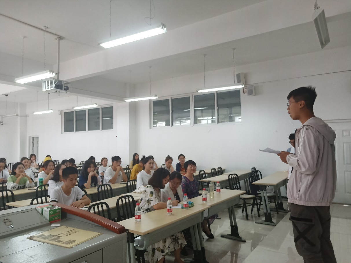 2019年9月24日中午12:20,伟德国际1946官网湖之韵朗诵艺术团(以下简称艺术团)在北4-205召开了新生见面会。艺术团副书记李静老师、艺术团常务副团长岑泽丽老师、艺术团指导老师邓双荣老师及艺术团18级员工负责人和团员、19级新生团员、部分往届团员,共60余人参加了此次会议 。