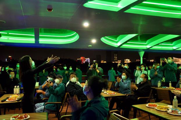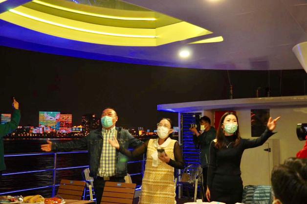4月9日晚,由湖北省总工会组织安排,武汉市委副市长刘子清同志、蔡甸区郝胜勇区长前往江汉关游轮为北京协和医疗队援鄂队伍践行,让医护人员在功成愿遂后有机会欣赏江城之夜景。北京协和医疗队援鄂队伍驻扎在抗疫最前线,接收新冠肺炎重症患者的武汉同济医院中法新城院区。他们是此次援鄂医疗队中规模最大的队伍之一,也是国家卫健委驻派来汉的高水平医疗队之一,在疫情最危急的时刻坚守阵地81日。