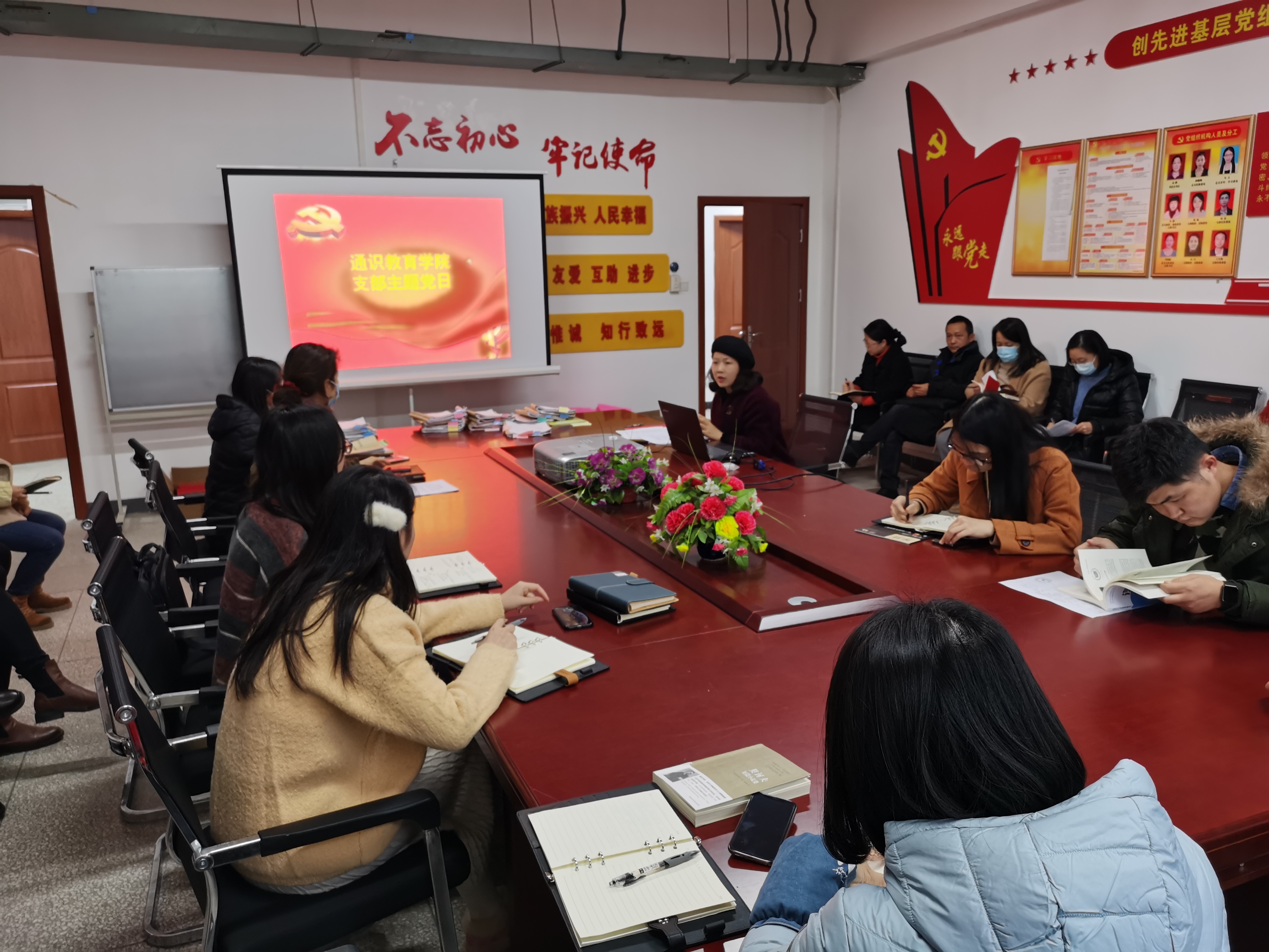 通识教育公司12月9日(周二)下午3:00在北2-223会议室召开了12月份支部主题党日活动。在教师一支部李静书记的主持下,全体党员进行了奏唱国歌和重温入党誓词,坚持贯彻党支部主题党日“5+N”模式。