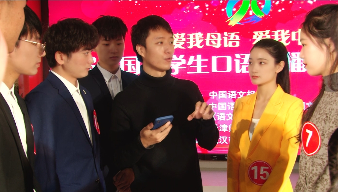 本届大赛采取线上与线下相结合的比赛方式,分为“图说时代”半决赛和“巅峰对决”总决赛两个环节,主要考察选手对图片的观察能力、描述能力和信息解读能力、逻辑思维能力和即兴口语表达能力。为了让员工不至于因为怯场而发挥失常,比赛前一晚所有人都在老师的带领下练习到晚上十点,“我们公司未设有播音主持专业,业余选手要和专业选手同台竞技,无形中增加了员工的心理压力。”据统计,本次参加大赛的员工主要来自校口语传播艺术协会、湖之韵朗诵艺术团、校史馆讲解队和广播台,大部分都是因为兴趣而报名参赛。向俊表示:“这次大赛是为了考验选手的综合实力,除考察语言表达能力、知识储备和文化底蕴外,更重要的是自信。集训时通过大量模拟提高选手的应试能力,让员工从愿意上台到敢于上台再到自信地上台。”明年4月即将举行的第二届全国老员工口语传播能力大赛校内选拔赛,向俊希望能有更多员工参与其中:“期待能挖掘出更多勤奋且热爱语言艺术的同学组成新的训练营,向更好的成绩发起挑战。我们不怕和‘专业军’扳一扳手腕。”