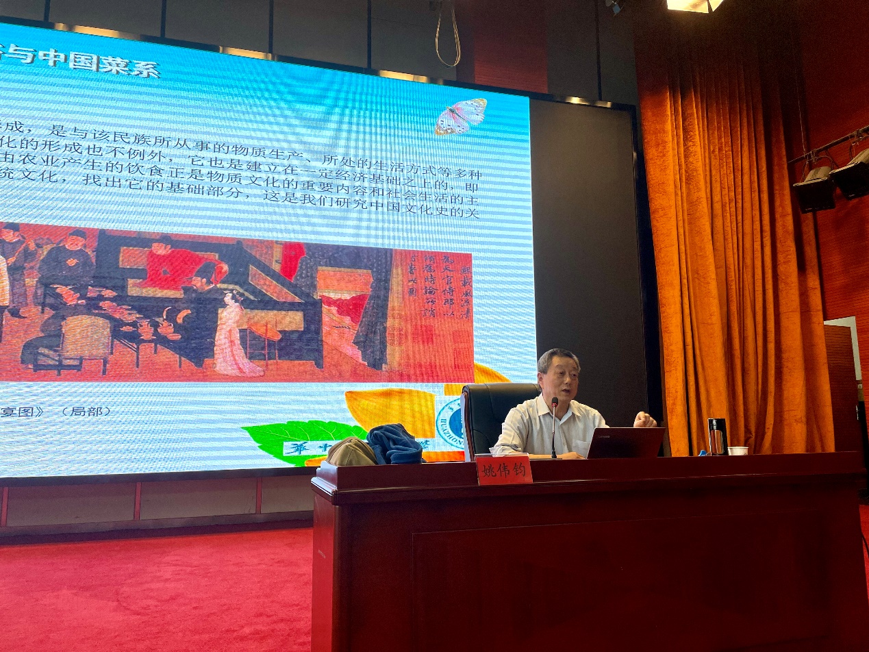姚教授从《楚辞》谈起,追溯楚菜的起源和发展,结合《楚辞》的章句,生动地向同学们介绍了楚菜的风味特色和文化内涵。回顾了武汉饮食产业在近代的发展历史,对荆楚饮食文化的发展提出了独到的见解。