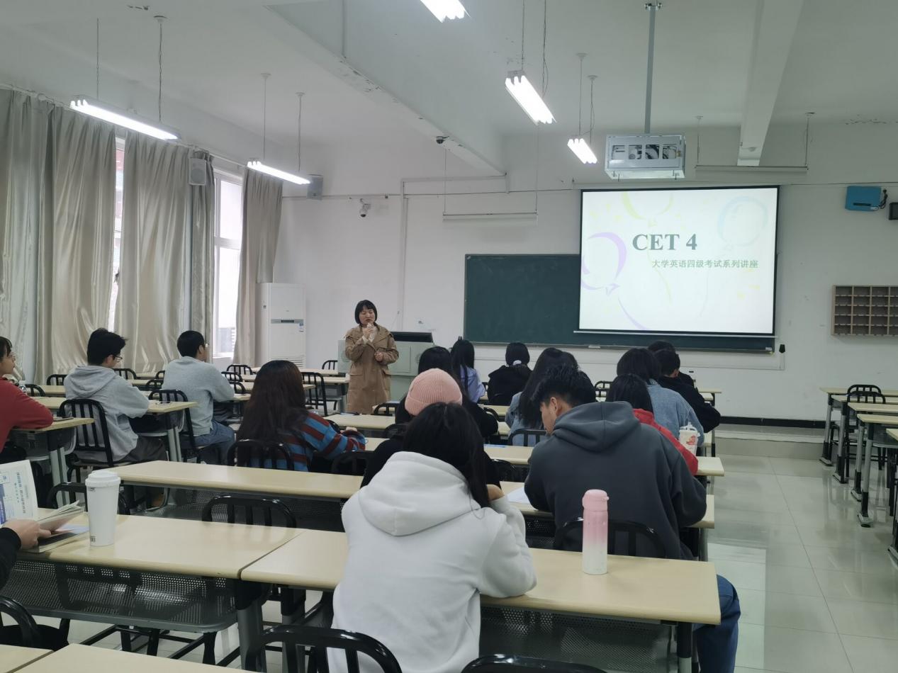 2021年11月20日上午8点到下午5点在北四教学楼111号教室,实验班班主任万玲妮老师邀请赵亚荣副教授为“书院制”拔尖人才实验班全体员工进行了系统的大学英语四级考试冲刺讲座。