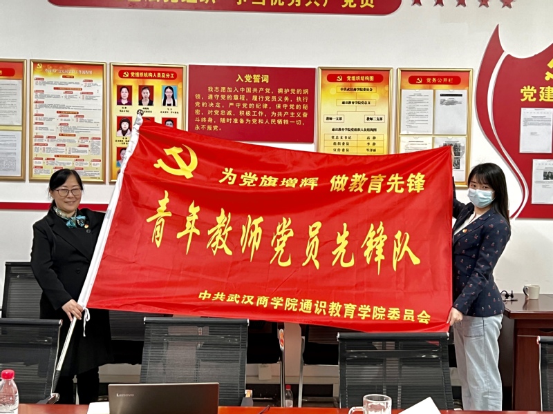 2022年5月10日下午,伟德国际1946青年教师党员先锋队正式成立,党委书记高静为优秀青年党员教师代表授旗,并作重要讲话。