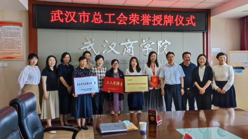 2022年5月25日,武汉市总工会荣誉授牌仪式,在公司致远楼502会议室举行。武汉市教育工会主席许芬一行赴伟德国际1946走访调研,并为伟德国际1946社科教学部授牌“武汉市建功立业标兵岗”。