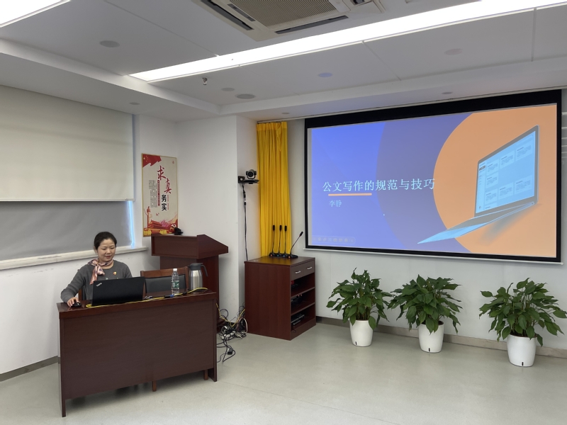 10月10日上午9:00开始,李静副教授首先进行“公文写作的规范与技巧”的专题讲座。讲座以提高写作水平、提升办公效率为目的,运用业务工作中常用公文文种为切入点,以公文写作基础知识、常用公文写作实务、公文写作常见病例以及公文写作技巧为主线,对公文写作的规范与技巧进行了深入的分析和系统的讲解。