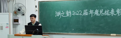 2023年2月28日晚18:30,湖之韵朗诵艺术团在北一208举行了2022届总结表彰大会。本次表彰大会有幸邀请到指导老师吕菊芳参会,在团长龚光琴的主持下正式开始。