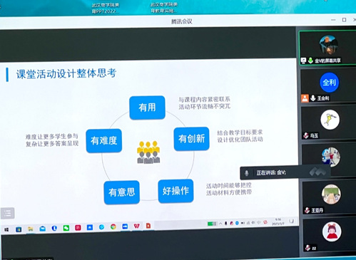 本次教研活动,吕菊芳老师,金巍老师、分享了整体教学设计、一些好的特色教学活动,介绍了教学管理技巧及对员工的学习要求。王亚丹老师分享创业机会章节课程设计。参会老师畅所欲言,对讲授创业基础课的心得体会进行了交流和探讨,就课程定位、教学方法以及如何搞活课堂氛围、提升课堂教学质量、提高员工的课堂参与度等问题发表了自己的意见和建议。