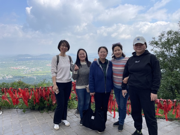 一路上,老师们欢声笑语不断,既放飞了美好心情,又舒缓了工作压力。登上山顶后,老师们纷纷爬上锁情台,锁情台是景区的最高点,亦是江汉平原最高峰。登高、观景、览胜,感怀极目楚天舒的美好意境。