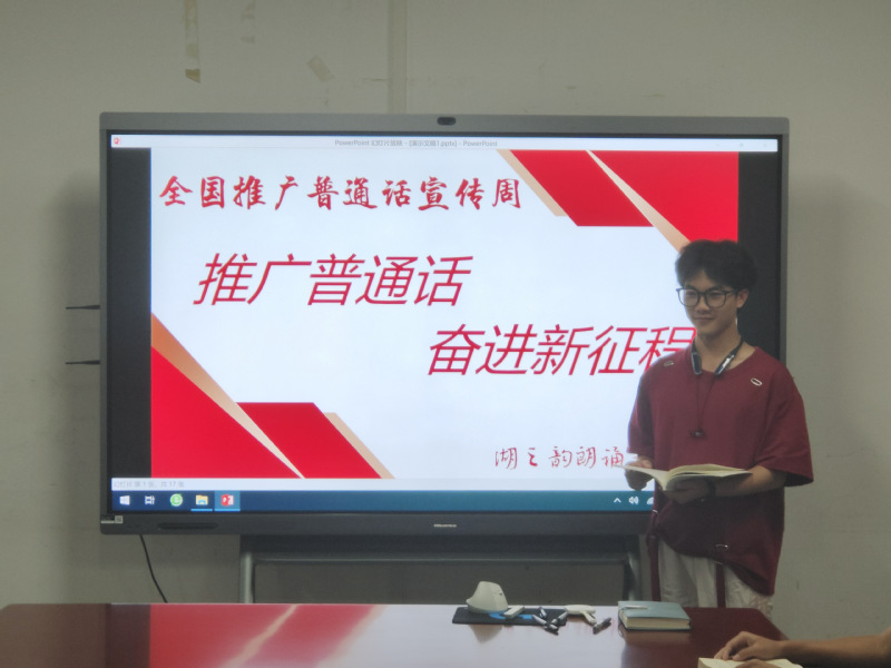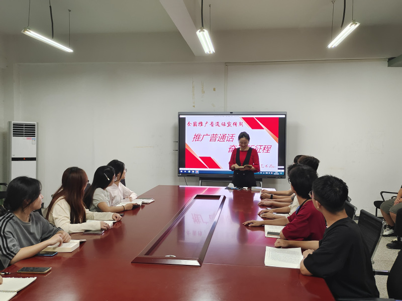 近日,为积极响应国家推广普通话的号召,增强校园语言文化氛围,湖之韵朗诵艺术社团在公司成功举办第27届全国推广普通话宣传活动。本次活动旨在提高全校师生对国家通用语言文字的认知,进一步推动国家通用语言文字的普及和规范使用。