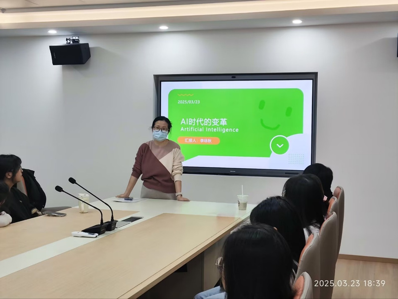 2025年3月23日晚18:30,湖之韵朗诵艺术团在北二205会议室开展文化传承,科技创新到全球引领主题团课。社团指导老师李咏秋老师以《AI时代的变革》为题,通过生动案例与前瞻视角,为社团成员揭开技术革命背后的文化密码。