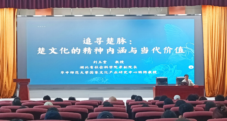 此次讲座内容丰富多彩,刘玉堂教授全程引经据典,幽默风趣且具有哲理,结合楚庄王、屠羊说、季布等历史人物故事,深入浅出,通俗易懂,妙趣横生,细致剖析了楚文化脉络中的多元特质,这些特质不仅展现了楚文化的丰富内涵,也为当代社会提供了宝贵的精神启示,让同学们深刻感受到了楚文化的独特魅力,增强了大家对历史文化的传承意识。