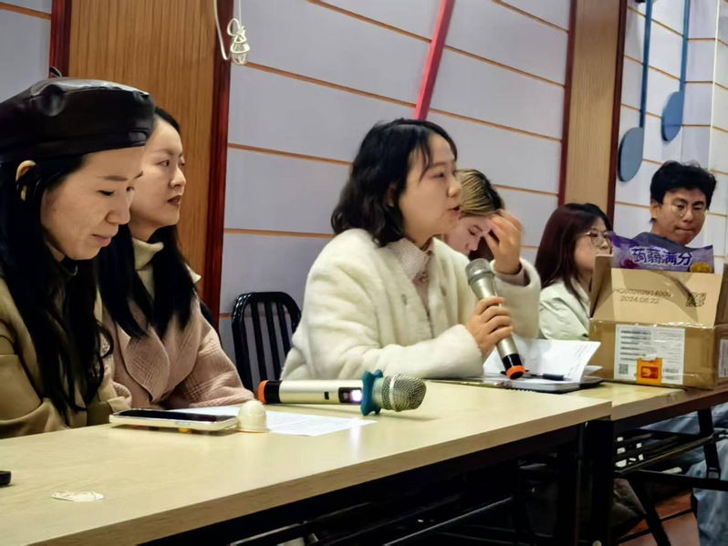 见面会的尾声,“击鼓传花”互动游戏欢乐登场。随着节奏的变化,道具在同学们手中传递,被选中的同学毫不怯场,即兴献上精彩表演。新生们的创意展现让人耳目一新,老成员们的默契配合也尽显团队活力,现场俨然成为一片欢乐的海洋。此外,大艺团还精心准备了丰富的零食与小礼物,让大家在轻松愉悦的氛围中畅玩畅谈,进一步增进了彼此的情谊。